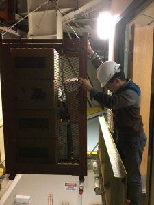 Dan Marrone (left) and Junhan Kim (right) setting up the backend in the receiver room