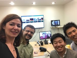We also kept ourselves awake at night by chatting with the people of the central coordination team in Cambridge, MA via their camera connection. This team was overseeing the entire operation, and could contact and, if necessary, wake up experts on particular issues if something went wrong at one of the telescopes. We joined in on one of their selfies during the shift change.