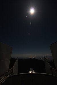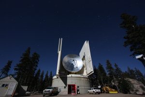 The Sub-Millimeter Telescope on Mount Graham under the moonlight. Picture: Junhan Kim.