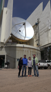 After arriving, we spent some days at the University of Arizona to work with Thomas Folkers, the SMT expert who wrote the software to e.g. retrieve and analyze the (meta)data taken at the telescope. There were still some telescope calibration issues to be worked out with him, and we had some time to enjoy the non-Dutch weather. On 2 April, it was time to pack our bags, equipment, and food for two weeks to start the 4-hour drive through the desert and up Mount Graham to the SMT. Dr. Dan Marrone and Junhan Kim of the University of Arizona, who coordinated the SMT observations, drove us up the mountain. The change in scenery was quite dramatic as we drove from a desert covered with cacti to a snowy pine forest within an hour. Dan and Junhan set up the hardware, and we were ready to observe on 4 April.