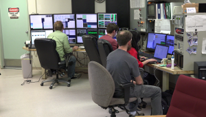 In the SMT control room. Left to right: Christian Holmstedt, Freek Roelofs, Sara Issaoun, Dan Marrone. Picture: Junhan Kim.