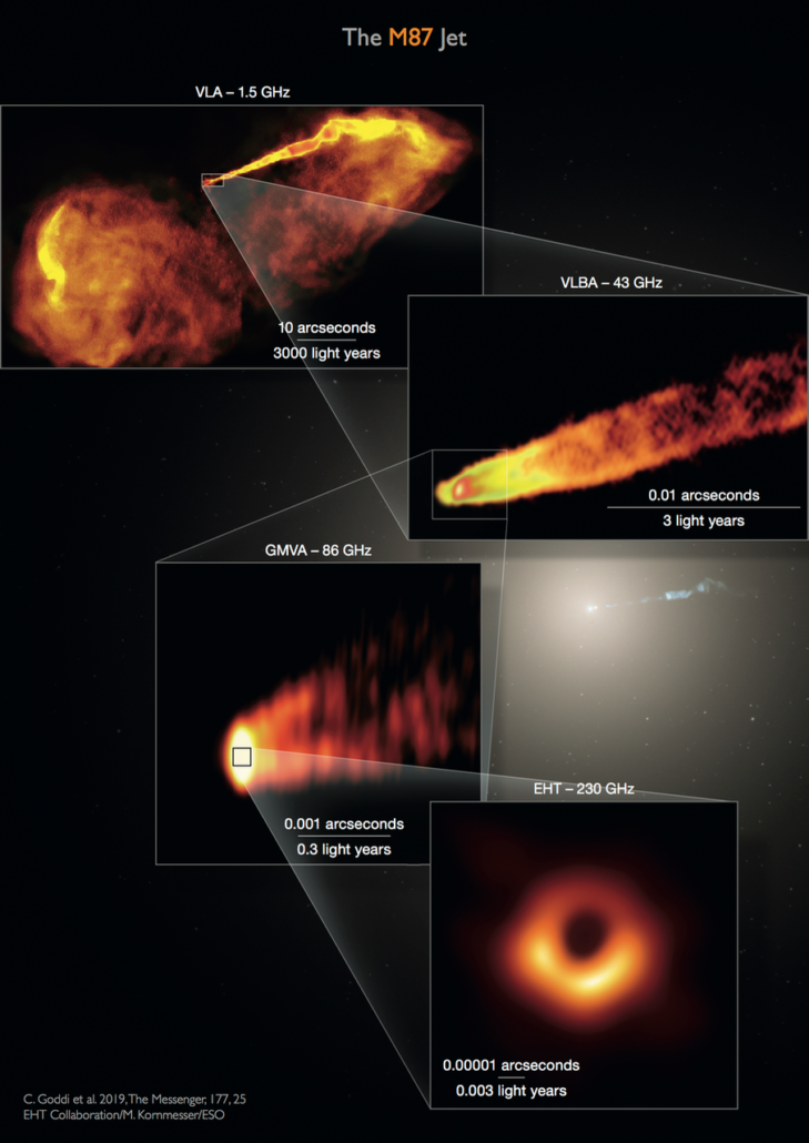 The two black holes that so far have been imaged – M87* and Sgr A* – look remarkably similar, even though our galaxy’s black hole is more than a thousand times smaller and less massive than the colossus pictured in 2019 and the physical conditions very different.