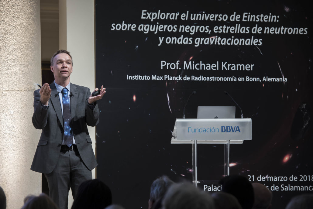 Michael Kramer visited Madrid on Wednesday, March 21 to give a talk titled “Exploring Einstein’s Universe: About Black Holes, Neutron Stars and Gravitational Waves” as part of the the BBVA Foundation lecture series Science of the Cosmos, Science in the Cosmos.